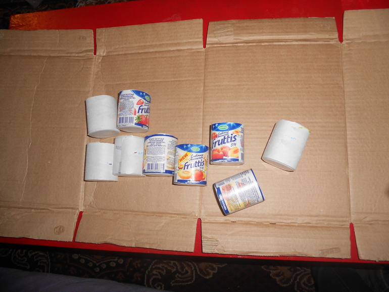 лишнее у коробки отрезала и склеила ее сложив попалам, у стаканчиков отрезала верх. нужно 16 шт.