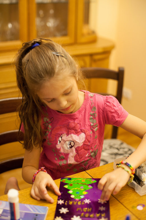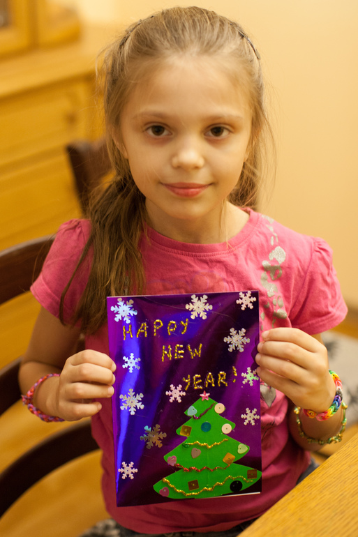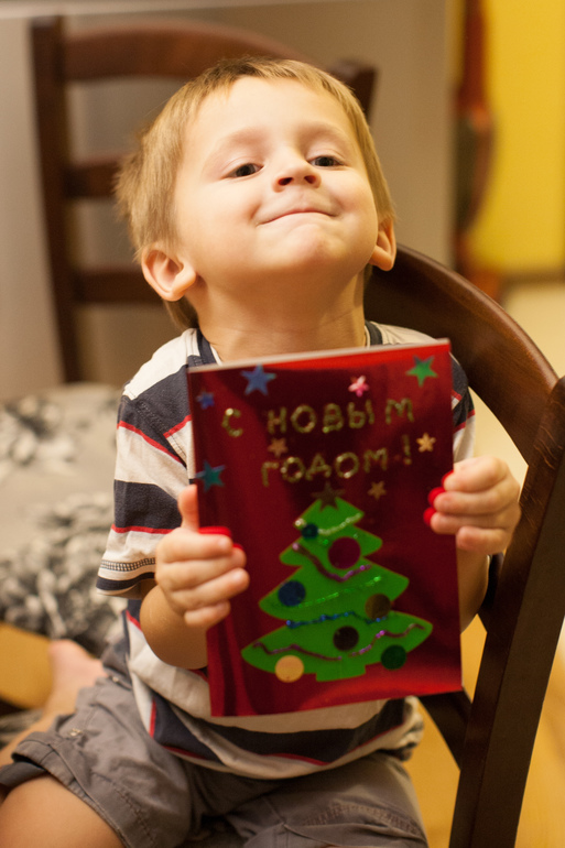 Поделки с детками.Для сегодняшних вечерних творческих посиделок мы выбрали изготовление новогодних открыток.