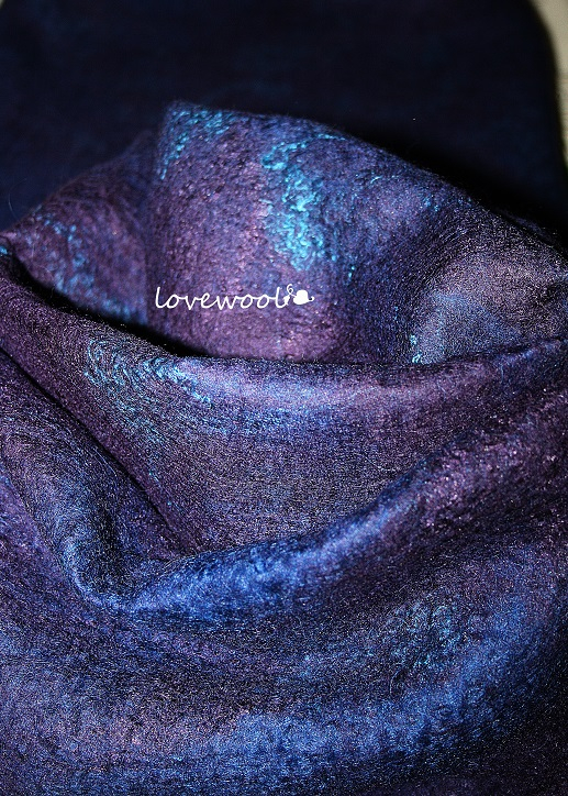 Фелтинг (валяние шерсти)валяный из шерсти итальянского мериноса, украшен волокнами натурального шелка, крашенного вручную.