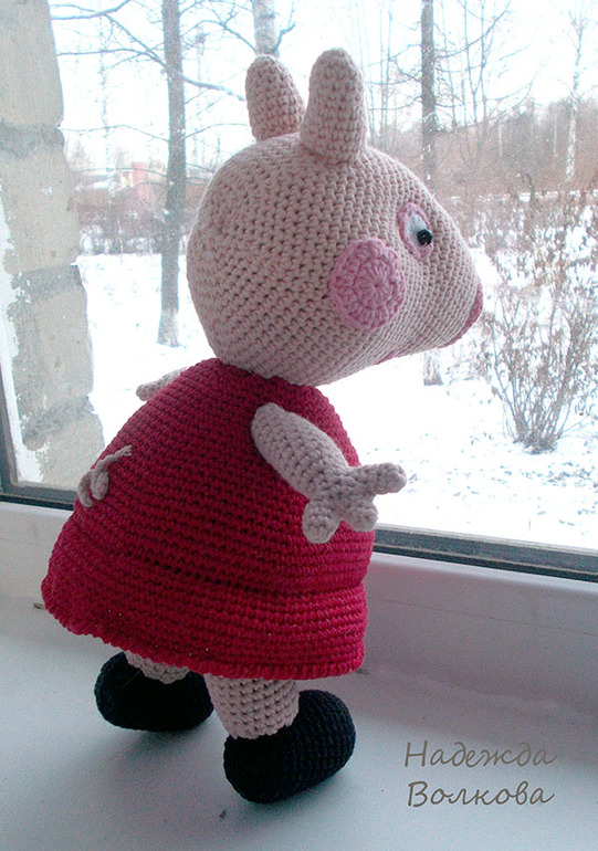 Связалась еще одна свинка Пеппа, для доченьки Римма . Надеюсь будущая хозяйка с нею подружится) Ростиком 27 см, стоит и сидит, если попросить)) Пряжа Котон Голд и Джинс, крючок 2. Уезжает в Питер она не одна , а в компании Пророро.