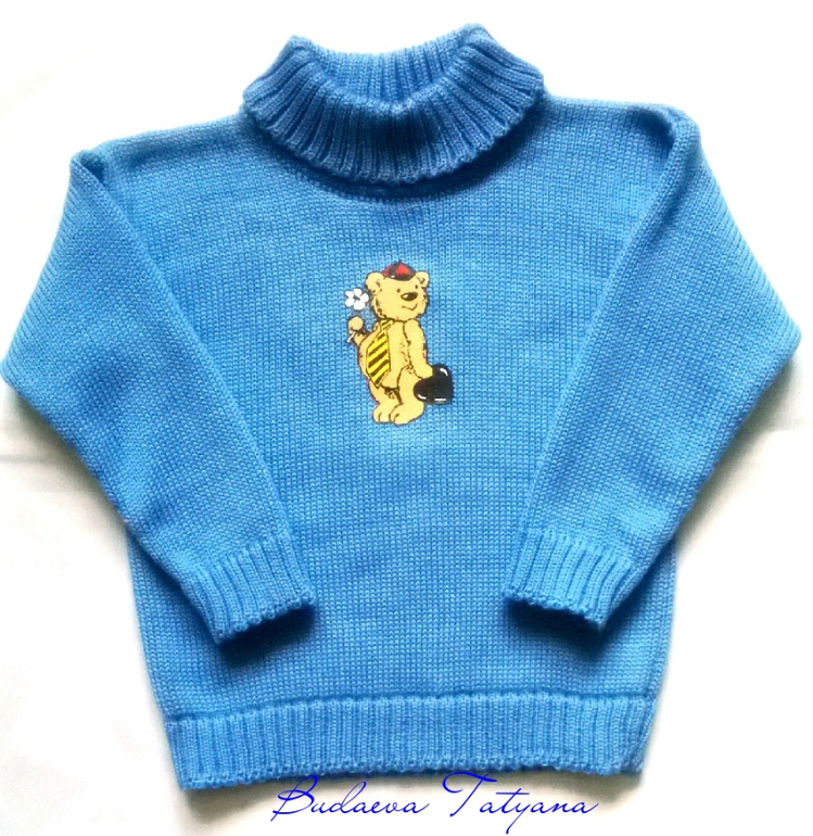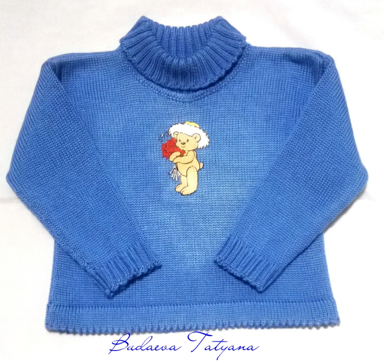 Эти свитера связаны в подарок для 7-и месячного и 1.5 года мальчишкам. Пряжа пинская в четаре сложения. Украсила термонаклейками.