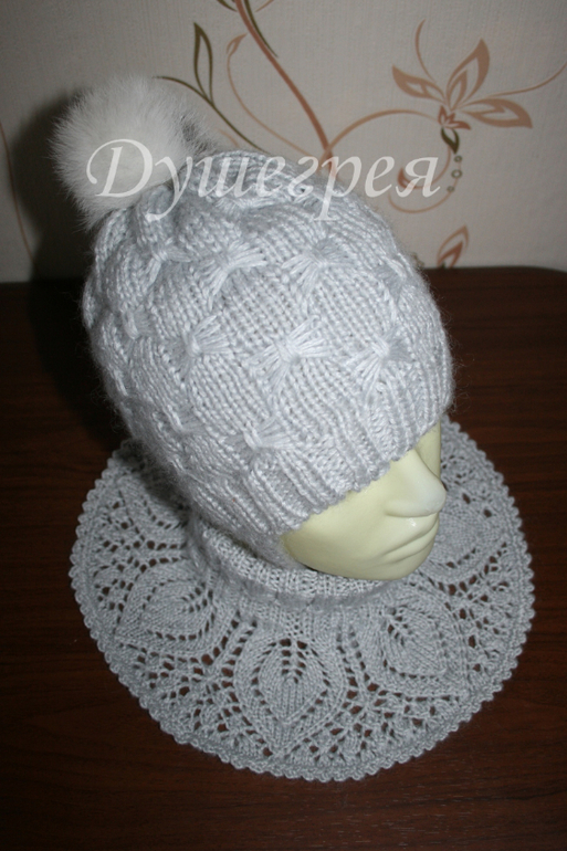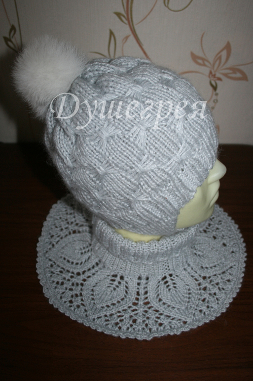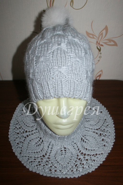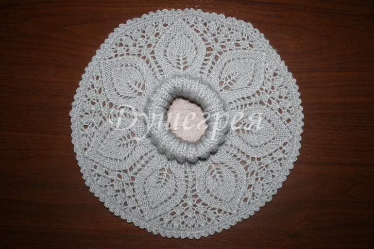 Шапочка "Распустивнийся пион" и ажурная манишка.