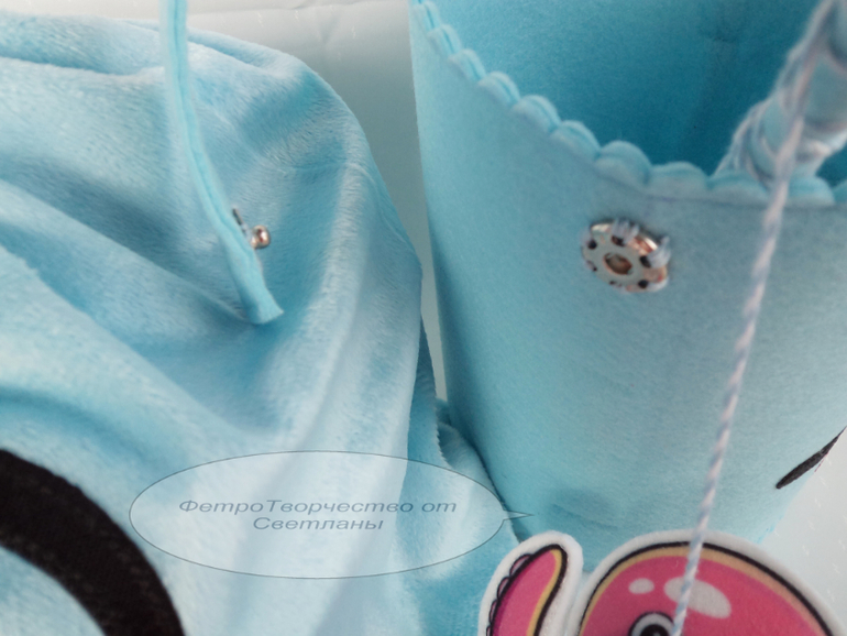 Чтобы ручка ведерка была съемной и подвижной - пришита кнопка.