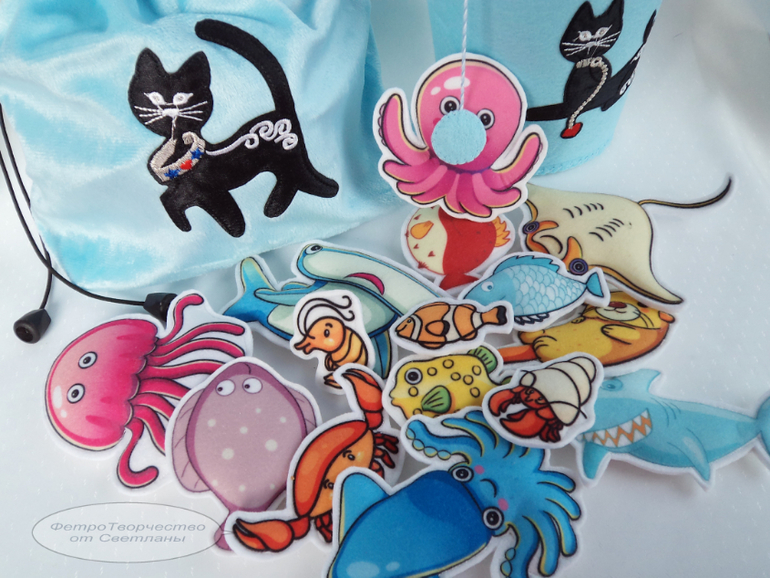 Отличная рыбалка! У меня вот никак руки не доходят сшить такую своим :(((. Света, хочется спросить, как специалиста,- многие в рыбок вшивают скрепки, а у тебя магниты, скрепки слабоваты???