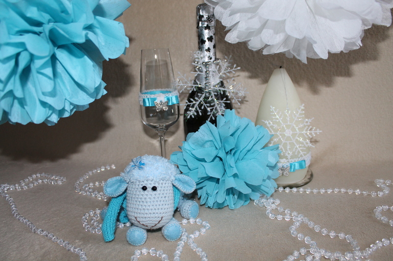 Катюш, Снежинка загляденье — просто сказочное создание!!! Пушистая и невесомая, как первоянварский снежок))) Бяшечка-нежняшечка небесного цвета))))а декор-то — декор — невероятно красиво))) атмосферненько так