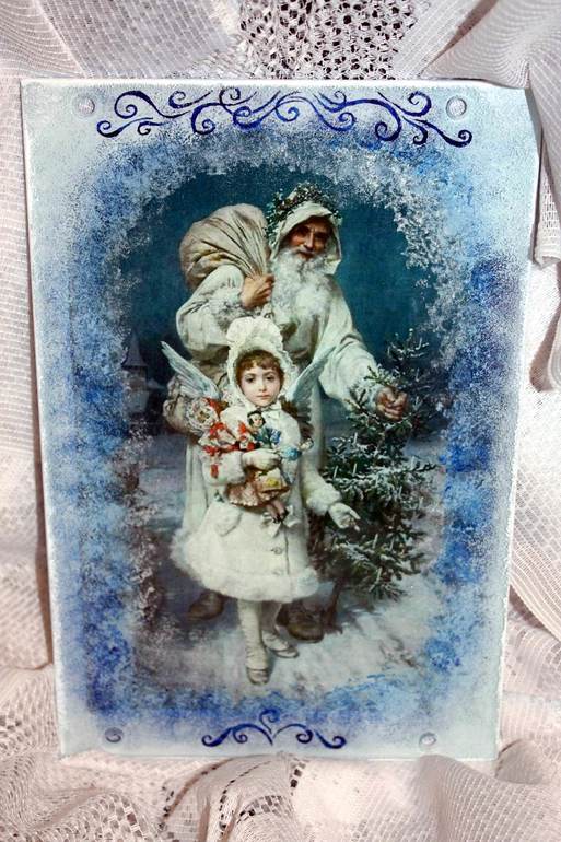 Вспомнила волшебное время обучения в школе декупажа и новогоднюю картинку, которую я воплотила в Панно "Зимняя сказка" с использованием распечатки и обратного декупажа.