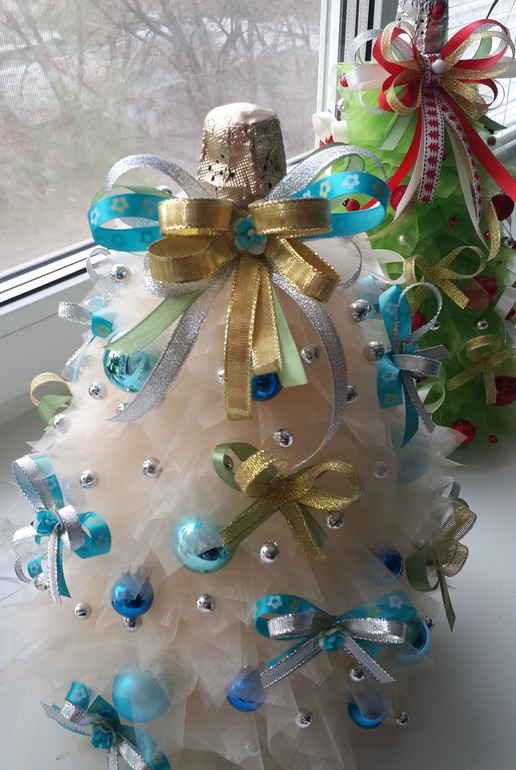 Решила поэкспериментировать с цветом и уйти от привычного красно-белого оформления зеленых елочек))). Как вам такой вариант?