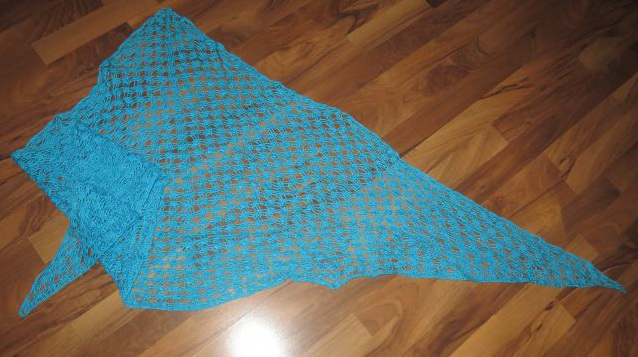 № 3. Шаль-платок. Бирюза, шикарный цвет! Мастерица - упомянутая выше. Подарила мне к моей морской кофте, но совершенно ни к чему. Ношу с той кофтой просто однотонный шелковый шарф, вязаная +вязаная вещь - перебор.