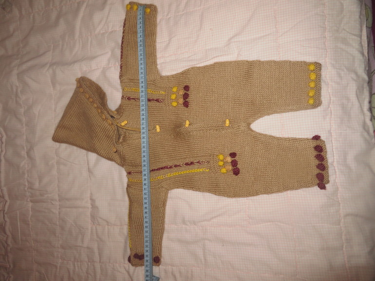 № 1. Связала подруга на рождение своего сына (2 года назад). Кесарево, сын родился крупным, пока оклемалась - комбез уже переросли. Ждали прибавления (еще и в сезон нужно попасть!) среди друзей. Родила недавно моя подруга, та же история: девочка, но очень крупная. Маму прокесарили, тоже долго в себя приходила, к прибытию домой и готовности щеголять в обновках - переросли
