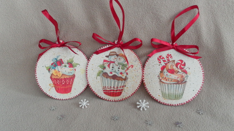 новогодние сладости-2 (прямой декупаж, набрызг, контуры)