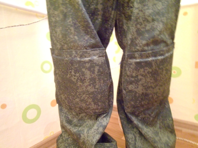 Так вот,штаны переделали: убрали боковые карманы-подсумки,на колени сделали меняющиеся наколенники( а то материал после их ползанья по лесам выдерживает 2-3 игры и дыры на коленях) и там вставлена изолоновая вставка,чтобы не так кололись камни.