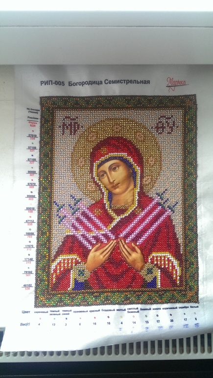 Я в основном вяжу... но тут меня переклинило, покупала нитки для очередного заказа, и увидела эту схему..загорелась прикупила все сразу... Пришла Домой и принялась за работу... В основном вышила за 3 дня... Осталось 5 рядочков в низу... и потом взялась за нее аж через пол года... Теперь надо в багетку добраться... Думаю доберусь так год за 5