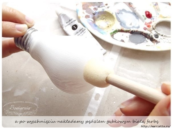 Спасибо, Танюш! А это пару я решила себе оставить))) а воспитателям сейчас делаю. У меня все 5 лампочек крашенных лежит)))Не поняла вопрос. Красила или клеила? тк ты спрашиваешь — чем красила, а ПВА — это же вроде клей.Я красила спец акриловой краской для декупажа.