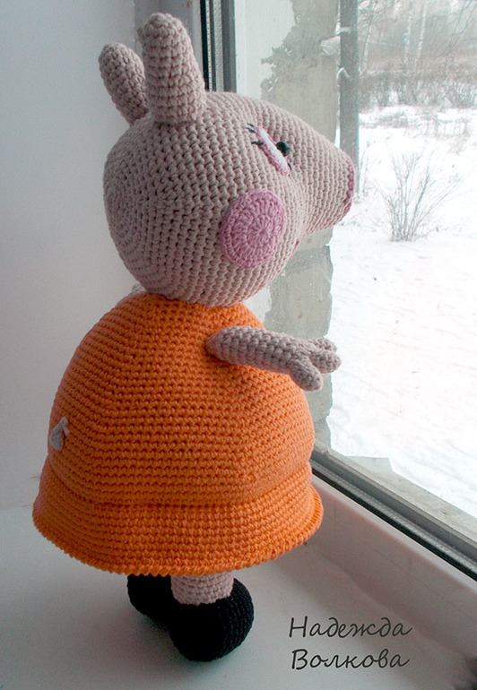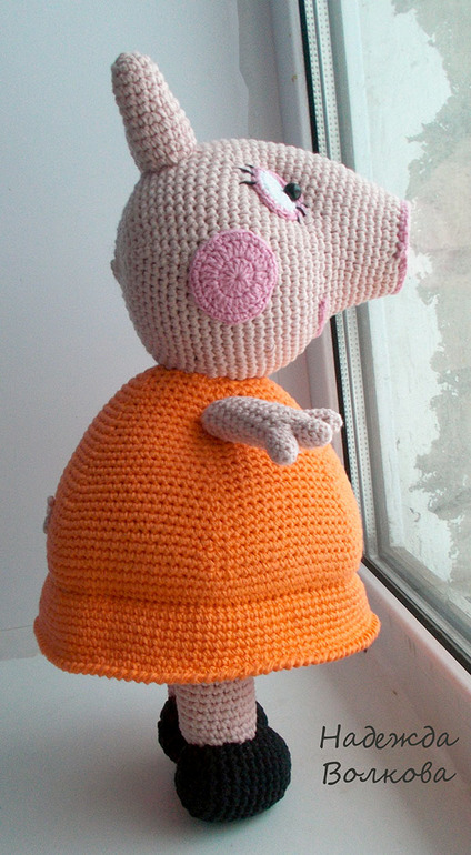 Связала для доченьки Aннабэль маму свинку. В этот раз свинка крупненькая 40 см. Стоит и сидит с опорой, лаки на нитяном креплении, двигаются.