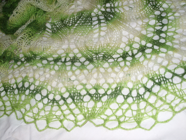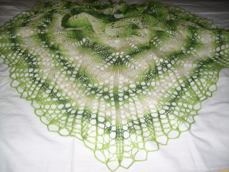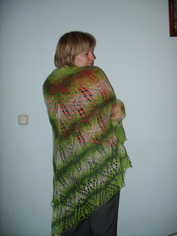 Спасибо) Спицы не написала, точно! от 3,5 до 4,5, в зависимости от пряжи, на кайму обычно потолще на полномера беру, чем на тело шали.