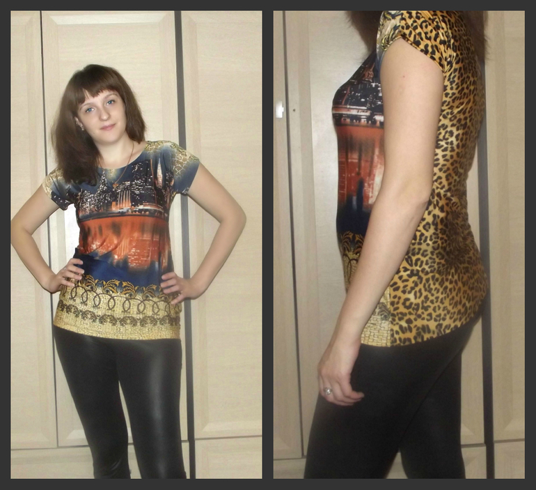 Шитье одежды, выкройки, ремонт одежды, шторы, швейные машины (уже приобретенные)Сшилась за вечер футболочка из холодного масла . Получилась немного тесновата в рукавах. Если к лету не всхудну, подарю маме (она у меня обожает леопардовые принты).
