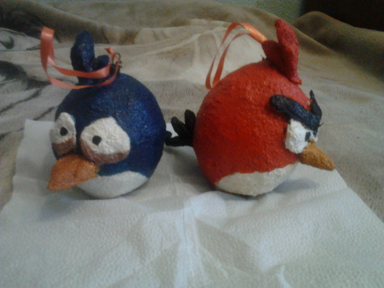 Изделия из бумаги, папье-маше, квиллинг.Теперь на елку.Запали сыну в душу эти птицы,весь дом в них)) Сваяли за день. На второй день красили.