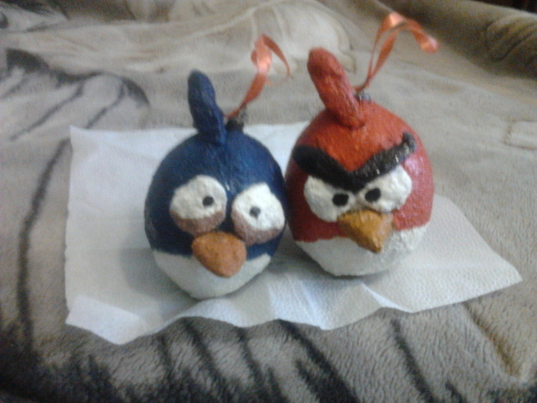 Теперь на елку.Запали сыну в душу эти птицы,весь дом в них)) Сваяли за день. На второй день красили.
