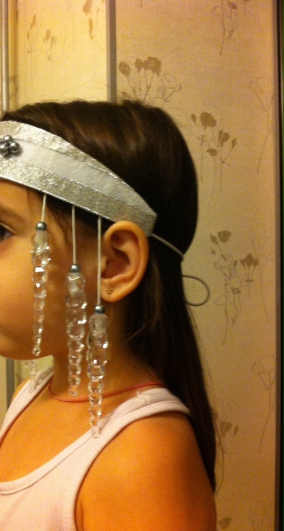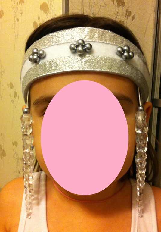 Я использовала: фетр, бусины, ленту металлизированную, пластиковые сосульки, шляпную резинку, фастекс и горячий клей)