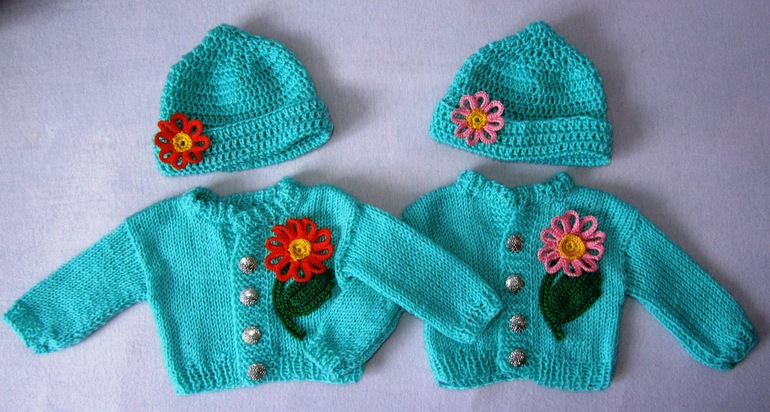 Да, было дело.. )))) я не виновата, что на момент вязания кофточек, я так не думала- моим писюлечкам было недель 10 где-то)))), и я не знала даже какого пола они будут))) Не распускать же... Вот и добавила только разноцветные читочки)))