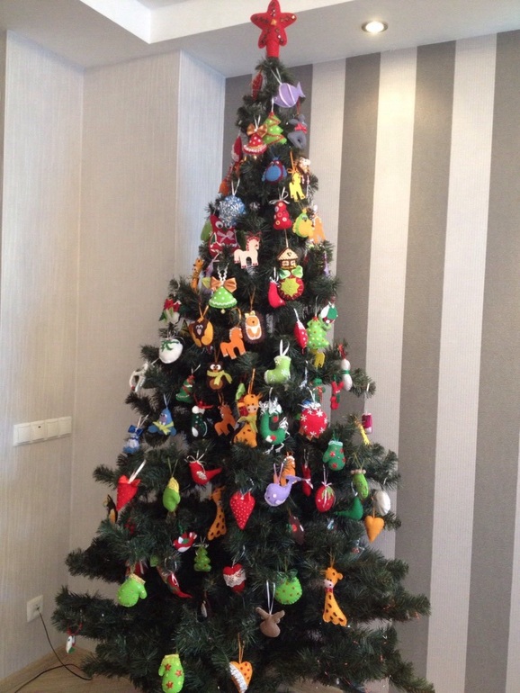 ФетрТут, на ББ, появилась хорошая традиция демонстрировать свои рукодельные елочки! Наша сама не очень рукодельная, а вот украшения - полностью из фетра.