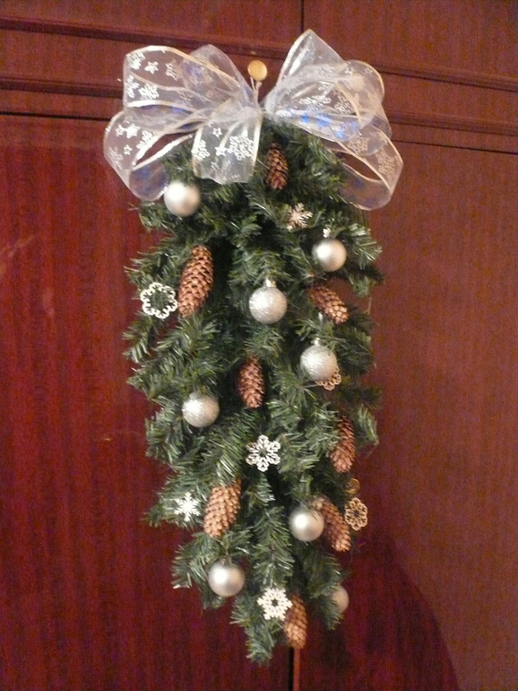 а вот подвесные веточки задекорировала шишками и елочными шарами + снежинки