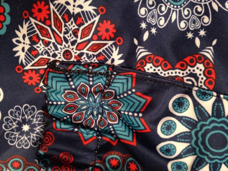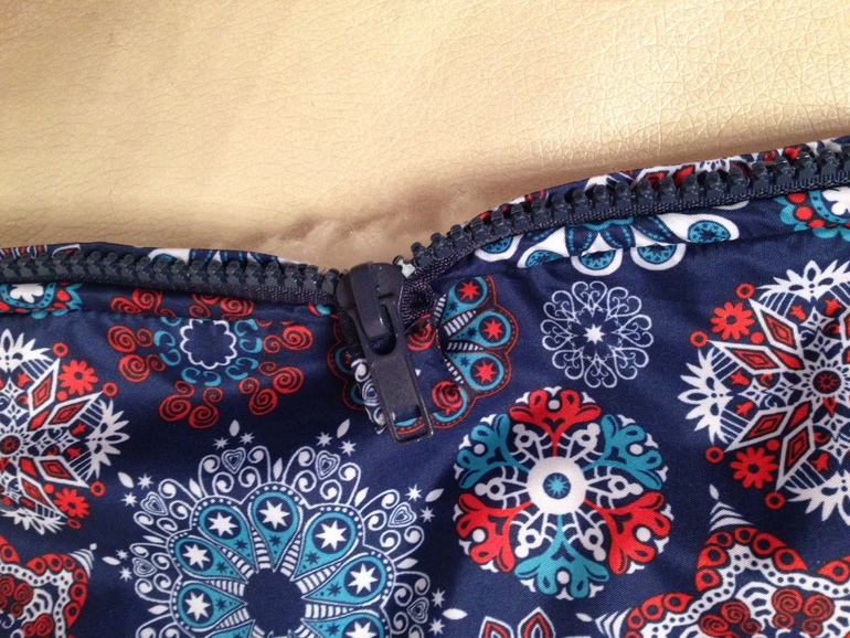 На этот раз сделала умнее - край молнии вывела наружу и подложила под нее планку.