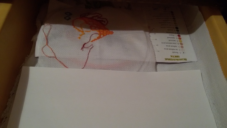 В одном из ящиков стола мирно разложены: вышивки,делаю по переменно,листы и бумага для скрапа!))