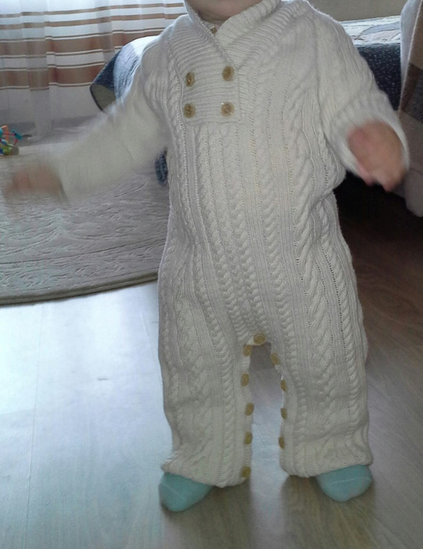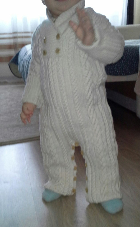 Получился чуть на вырост. Накосячила чуть в переплетениях этих кос, сбилась с ритма, но вроде не критично. Вывязала ластовицу под памперс. Пожалела что реглан сделала, надо было обычную классику сделать
