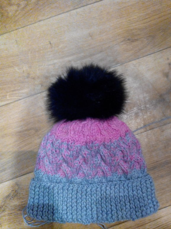 Я конечно не спец, но основываясь на моем предположении мне кажется что вяжется в три нити. Низ серая+серая+серая, переход серая+серая+розовая, далее серая+розовая+розовая, и верх розовая+розовая+розовая ниточка. Как-то так, чтобы был плавный переход от цвета к цвету.