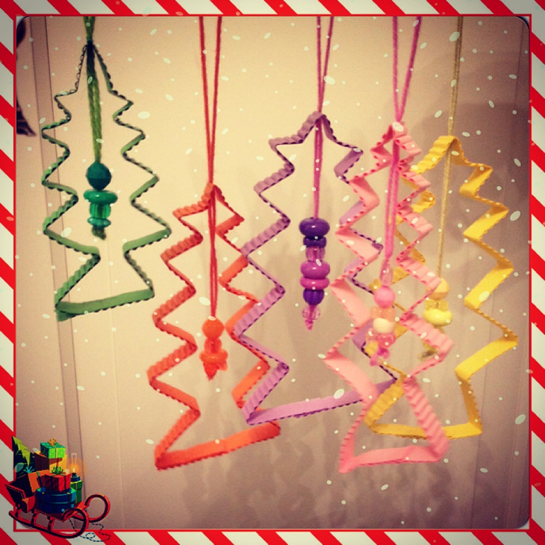 Поделки с детками.Вот такие милые елочные игрушки в виде елочек сделали в качестве новогодней поделки в садик)))