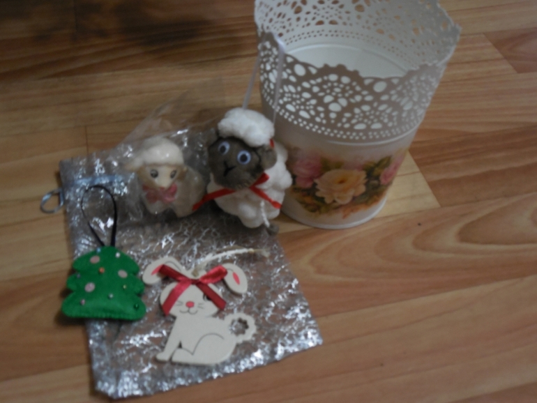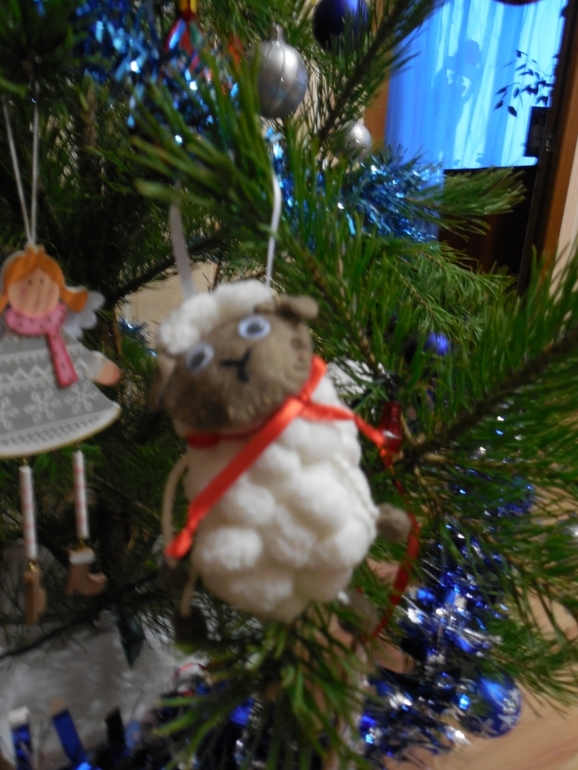 Так и не смогла сфоткать барашка нормально, но он такой забавный, висит на елке)))