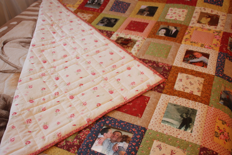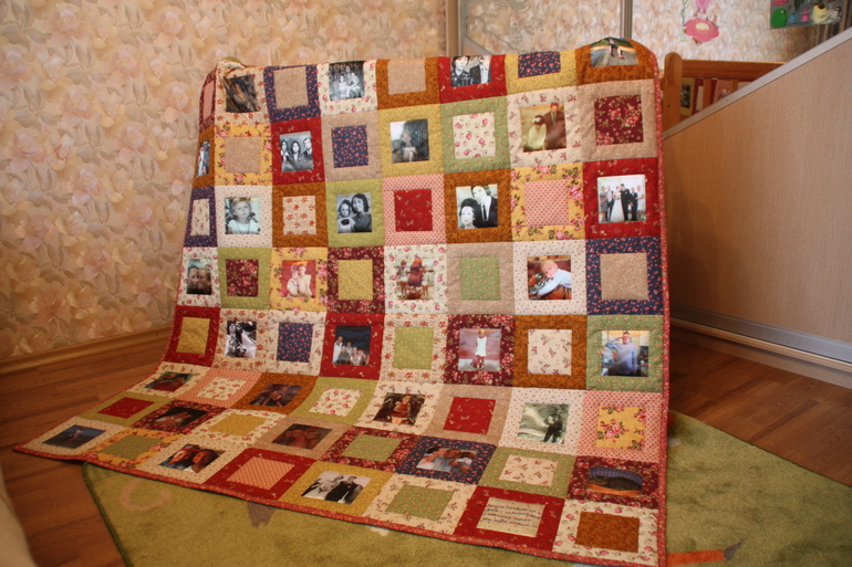 комментарий заказчицы: "Потрясающе получилось! Думаю, нашей маме, на юбилей которой мы и заказали это одеяло, подарок обязательно понравится!!!"