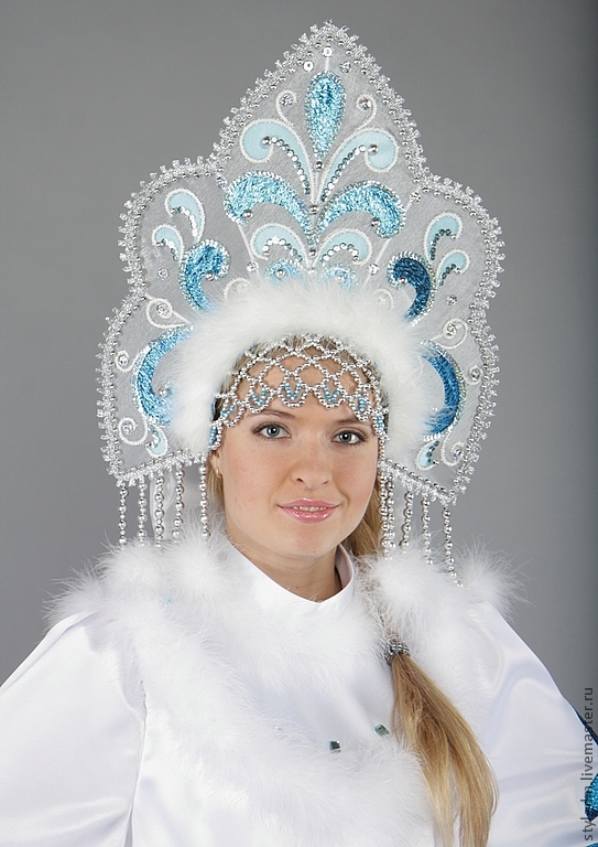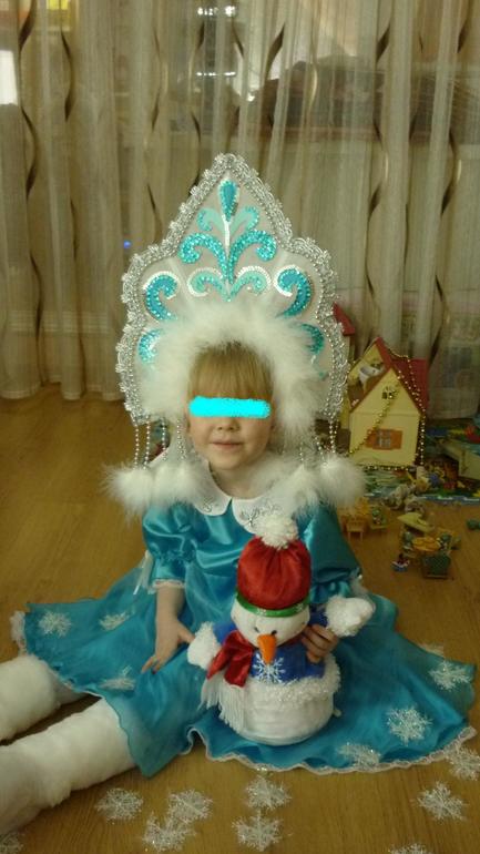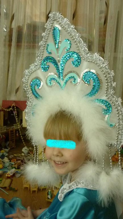 В садике по сценарию младшая дочка должна быть снегурочкой. А времени, чтобы сшить красивый костюм совершенно нет. Решила акцент сделать на кокошнике),за основу взяла вот этот роскошный! Даже не ожидала, на голове сидит как влитой) можно прыгать, бегать, ничего не упадет. Платье взяла от уже сшитого когда-то костюма "Мальвина", узоры на кокошнике, думаю, отлично гармонируют с цветом платья). Ну и закончила образ белыми пушистыми сапожками)