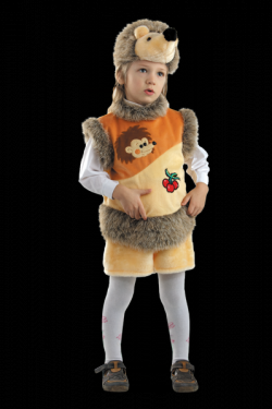 У нас покупной костюм ежика, шапочка сзади на резиночке по типу бейсболки