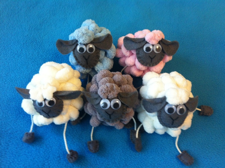 Ничего что нитки у нас темнее чем помпон, они утонут в нем и их вообще не будет видно. Так что смело пришиваем наш чупчик ко лбу овечки.