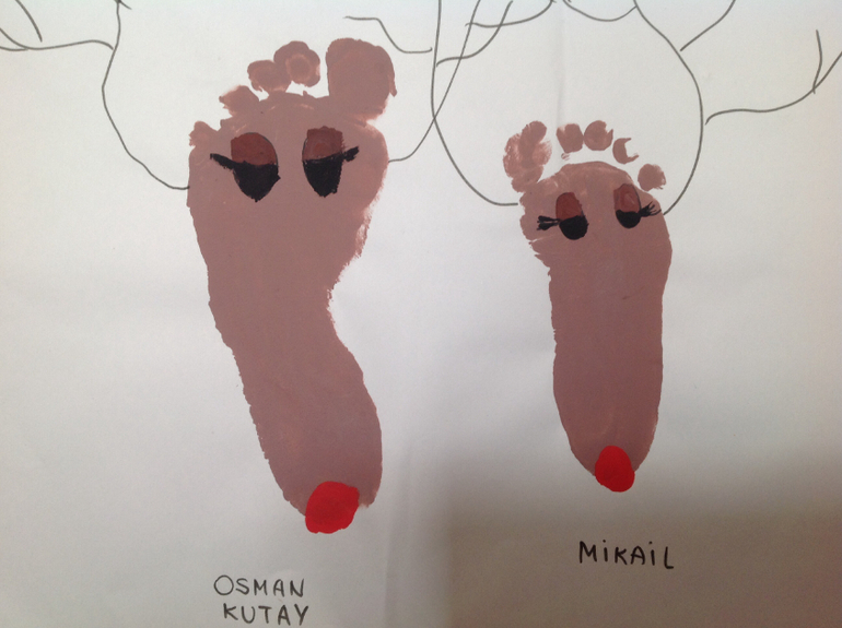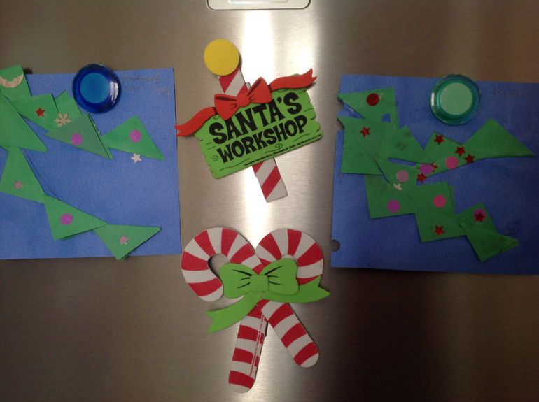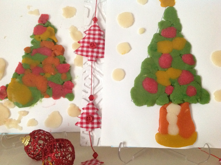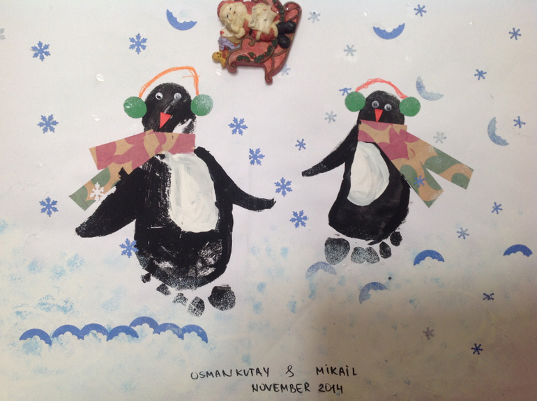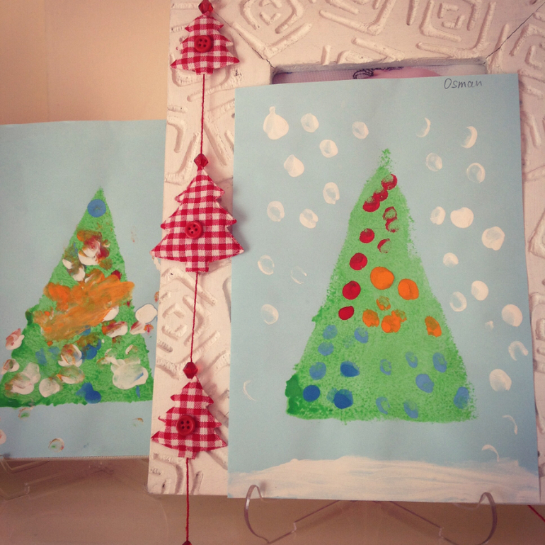 Поделки с детками.С удовольствием творим новогоднее зимними вечерами,я сама как ребенок увлекаюсь не меньше мальчишек. Рисуем домашним пластилином, мастерим поделки из бумаги, сыновья очень любят использовать декоративные дыроколы, рисуем штампами и пальчиками и самое полюбившееся у них рисунки по отпечаткам стоп и ручек.