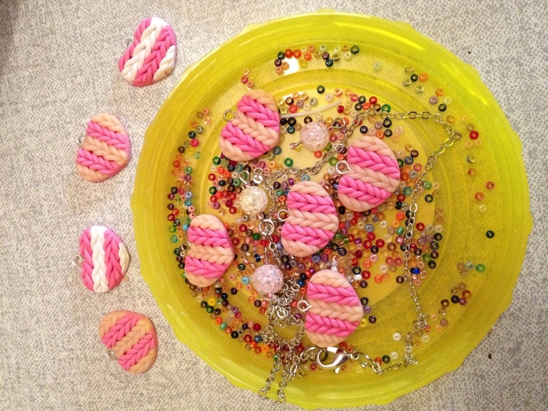 Так же попутно сразу вопрос. Как закрепить пины в поделках? Сделал поделку, вставила прямой пин, после запекания пин достаточно легко вытаскивается. Пробовала смазывать пин клеем и вставлять в поделку. Помогает, но не очень хорошо. К примеру, если делаю вязанные сердечки, то сделала основу, намазала клеем Фимо, положила косички. Далее в готовую работу вставила пин. Запекла. После остывания потянула пин и он выскакивает. Положить пин на основу (под косички) не получается т.к. я потом формочкой вырезаю сердечко.