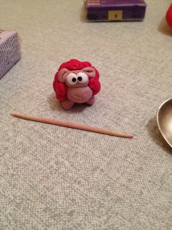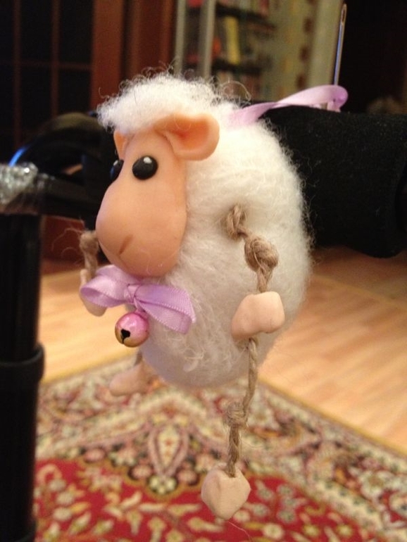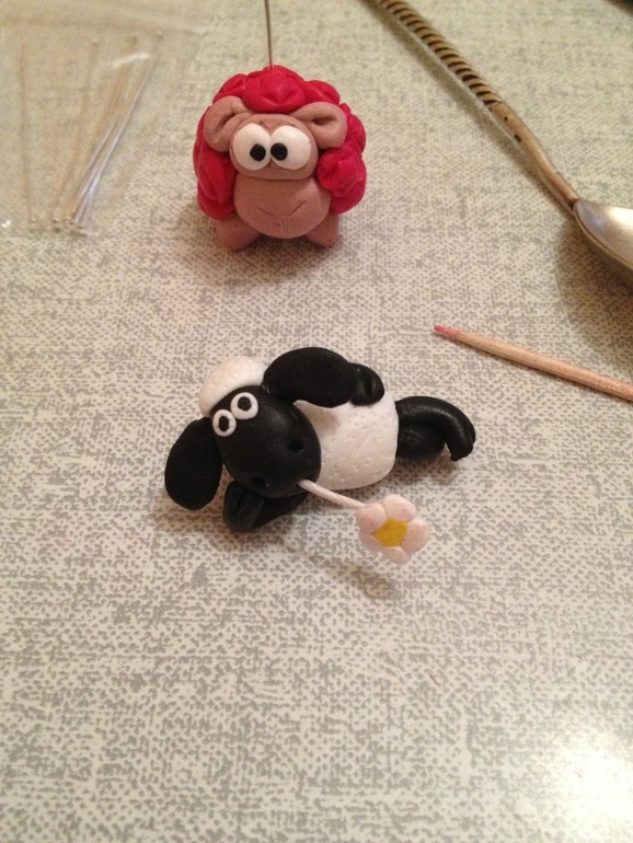 Барашки. Я слепила мордашку из пластики, а мама сшила из наимягчайшей ткани тельце.