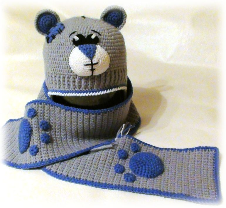А этого Теддика связала на заказ. Шапочка утеплена флисом. Ну, ооооочень теплая получилась.