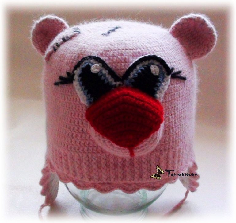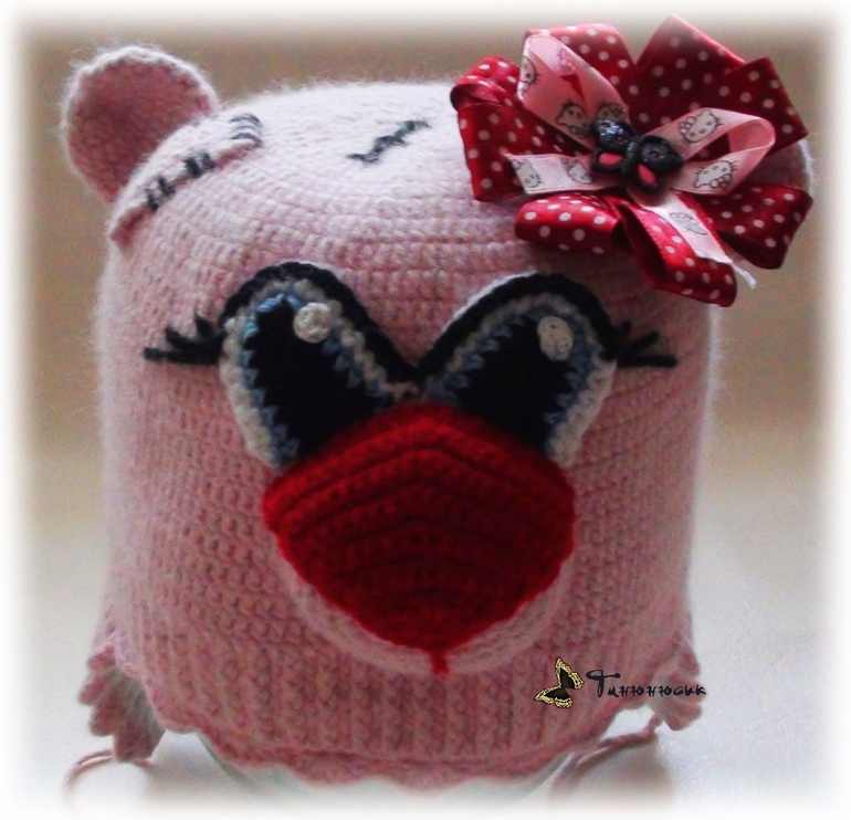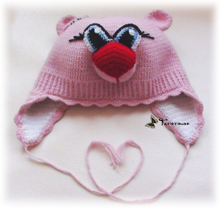 Шапочка зимняя по мотивам медвежонка Тедди, в девчачьем варианте. Шапка с вязаным подкладом, очень теплая.
