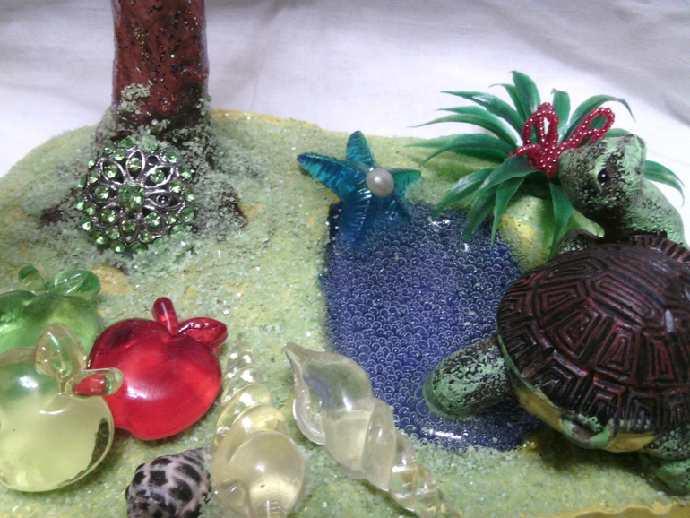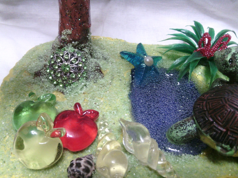 Очень симпатично! Прудик — это из чего, подкрашенный клей Титан?