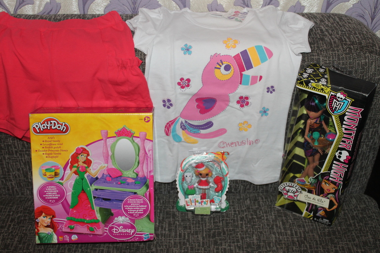 Мария ты чудо фея!!! Подарила все что любит Вика. Набор Плэй- до, лалалупси да еще и новогодняя и кукла Монстер Хай. Красотка Клео Денил. Пополнилась наша коллекция.