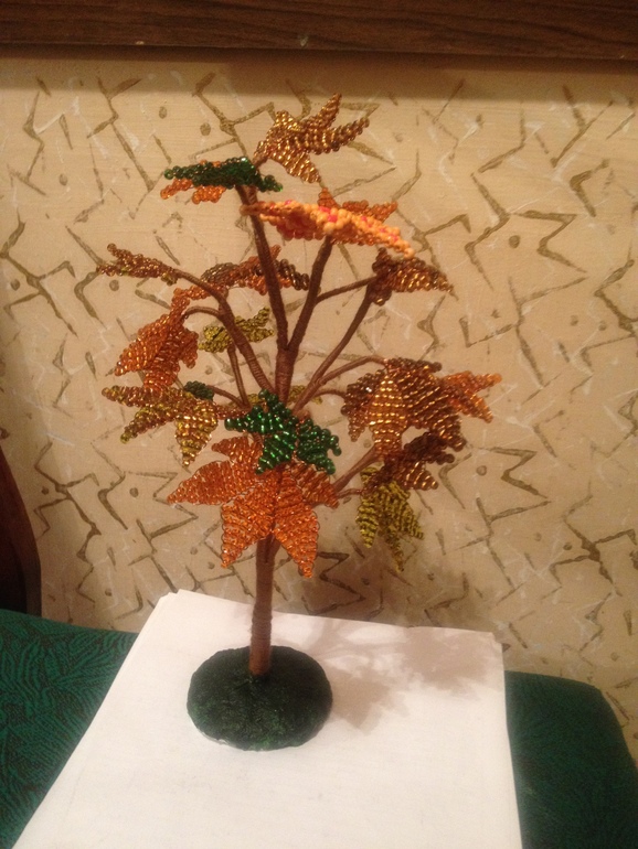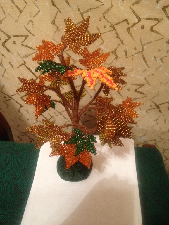 Бисер. Бисероплетение. Украшения из бисера.Девочки! Наконец-то Анюточка моя доделала клен. Очень тяжело он ей дался, чего-то не пошел, наверное рановато в 6,5 лет, ну ничего, для такого возраста вроде красиво.