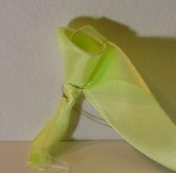 Второй мой опыт был при изготовлении резинок под платье младшей дочки. Т.к. на платье роза, бантики бы смотрелись лишними. (моя молочная, такой оттенок голубого не смогла найти)