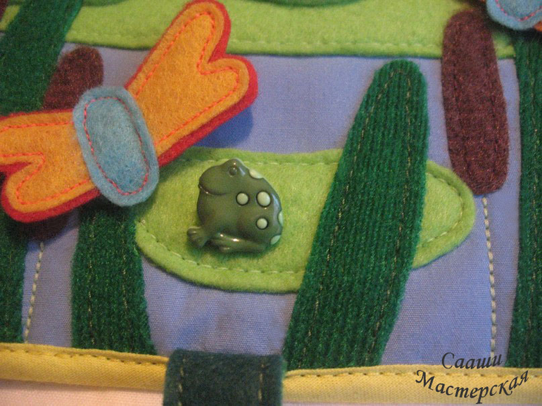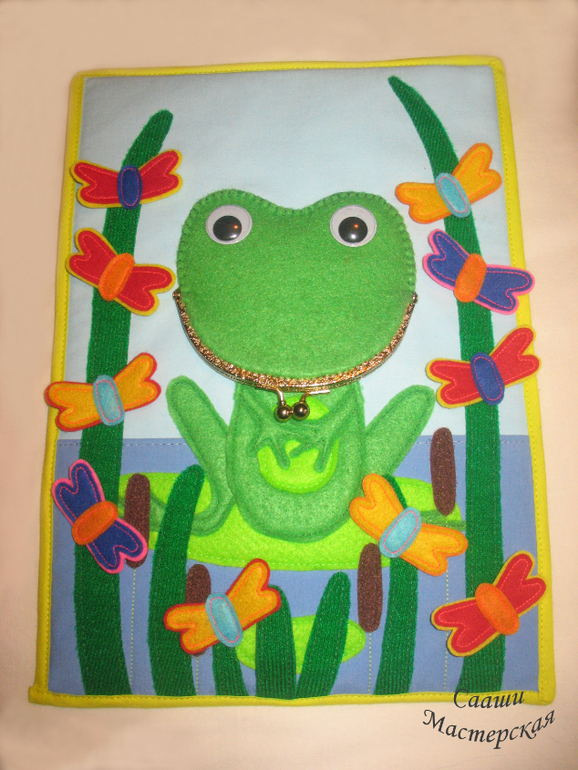 1. С одной стороны планшета расположилась лягушка со стрекозами.