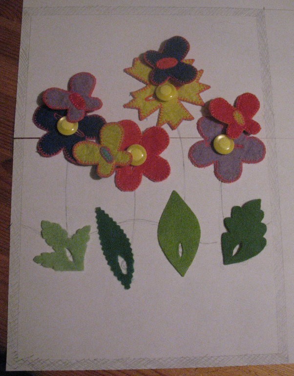 По той же причине - нестандартный размер заказанного планшета, то необходимо было понять, гармонично ли будут смотреться цветы и листики того же размера, как на страничке из развивающей книжки, поэтому был сделан эскиз и этого сюжета: