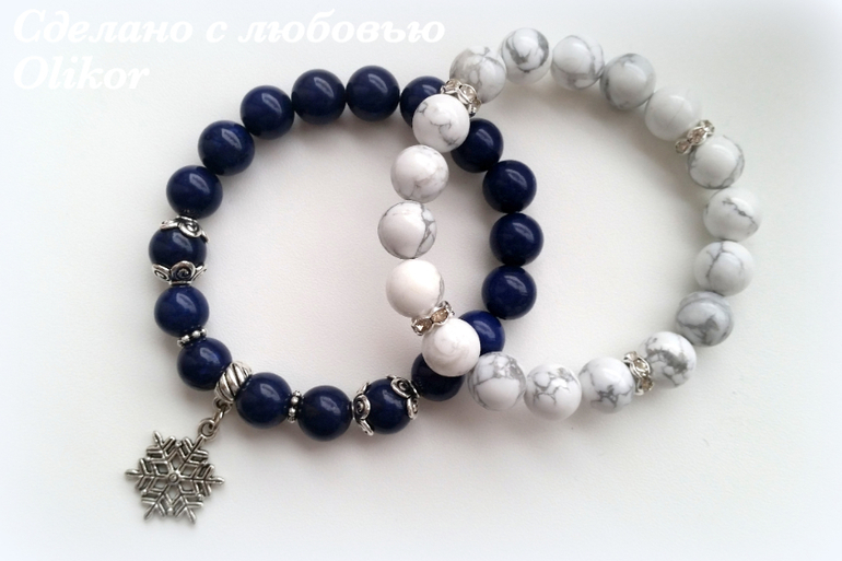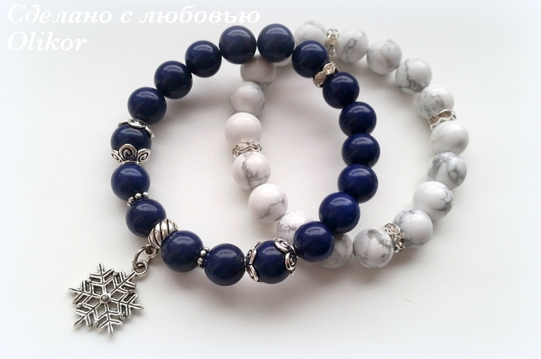 Бижутерия для слингомам. Слингобусы. Грызунки.Очаровательный зимний комплект из тонированного темно-синего агата и кахолонга.