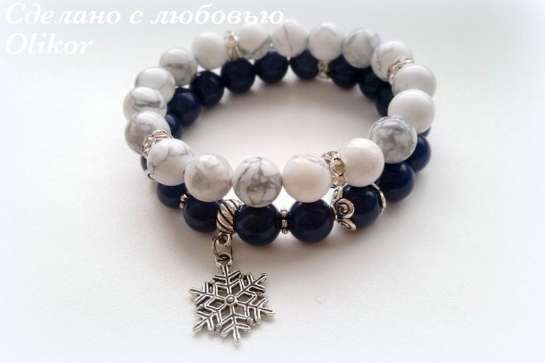 Очаровательный зимний комплект из тонированного темно-синего агата и кахолонга.
