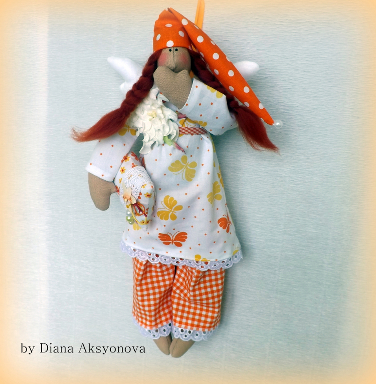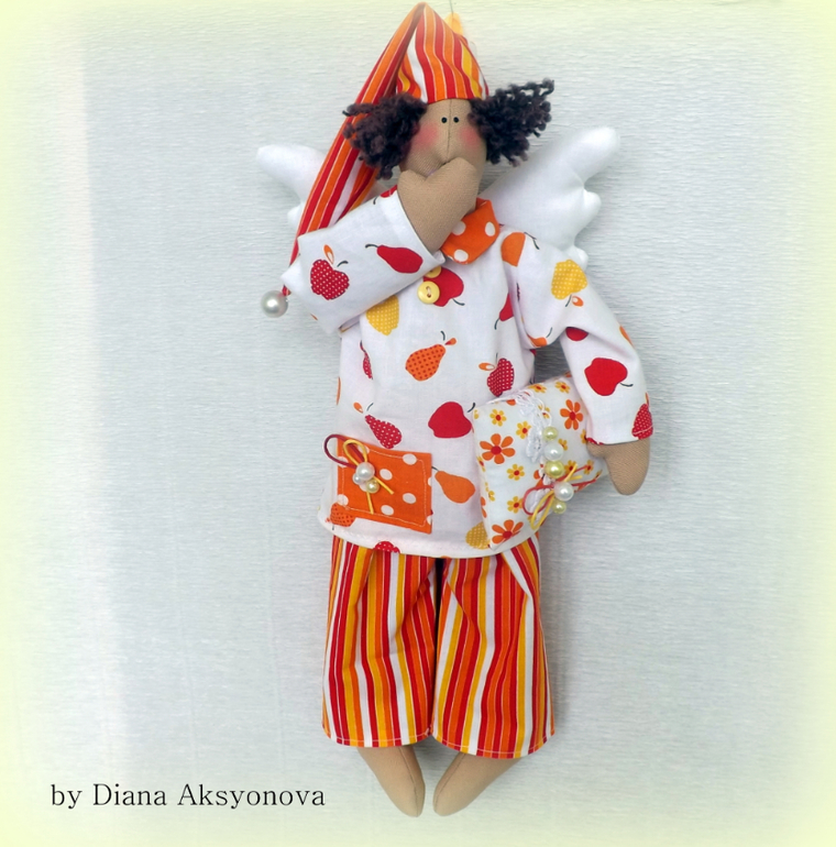 я сама сонного ангела как-то в ярко-оранжевой пижамке с котятами сшила.